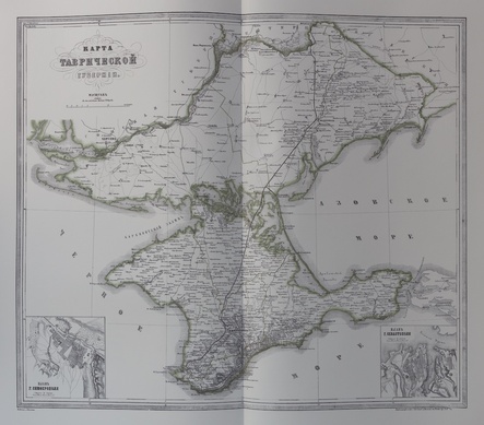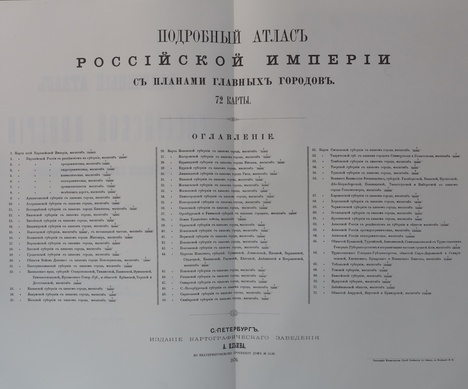 Карты Российской Империи из подробного атласа Российской Империи с планами главных городов, изданного в 1876 году в Санкт-Петербурге. Опубликованные карты содержат информацию о расположении всех населенных пунктов и главных городов в следующих регионах: Херсонская губерния, Черниговская губерния, Таврическая губерния, Киевская губерния, Полтавская губерния, Харьковская губерния и Екатеринославская губерния. Материалы переданы в РВИО из личной библиотеки гражданина.