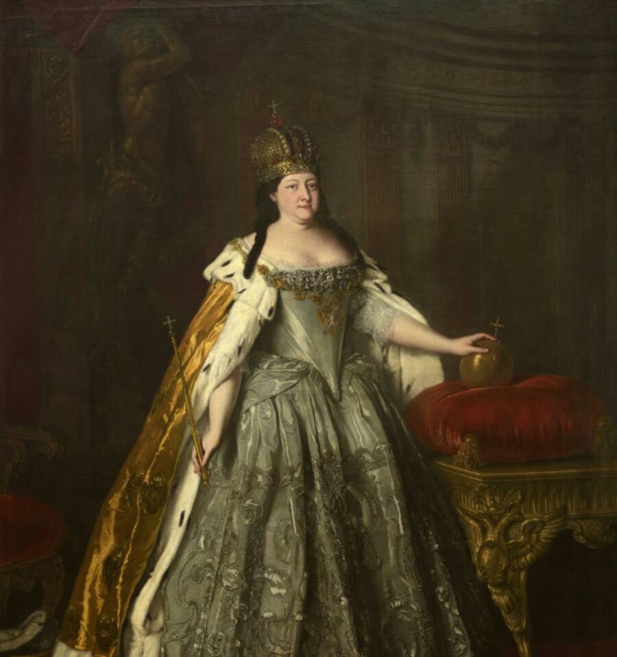 Анна Иоанновна (28 января (7 февраля) 1693 – 17 (28) октября 1740), вторая дочь царя Иоанна V (брата и соправителя царя Петра I) и царицы Прасковьи Федоровны, родилась в Москве, в Кремле. Детство провела в Измайлове. В 1708 г. ненадолго переехала в Петербург. В 1710 г. выдана замуж за герцога Курляндского; овдовела вскоре после свадьбы. В октябре 1709 г. Пётр I на встрече с королем Фридрихом Вильгельмом I договрился о браке юного герцога с одной из представительниц русской царской семьи. Выбор пал на среднюю дочь царицы Прасковьи – Анну Иоанновну. С лета 1712 г. в качестве герцогини Курляндской она жила в Курляндии. В 1726 г. опрометчиво дала согласие на брак внебрачному сыну польского короля и саксонского курфюрста Августа Сильного графу Морицу Саксонскому, не входивший в политические планы Российской империи и расстроенный личным вмешательством А.Д. Меншикова (так называемый Курляндский кризис). В 1718 г. в канцелярию герцогини поступил на службу 28-летний курляндский дворянин Эрнст Иоганн Бирон, ставший с 1727 г. её фаворитом.