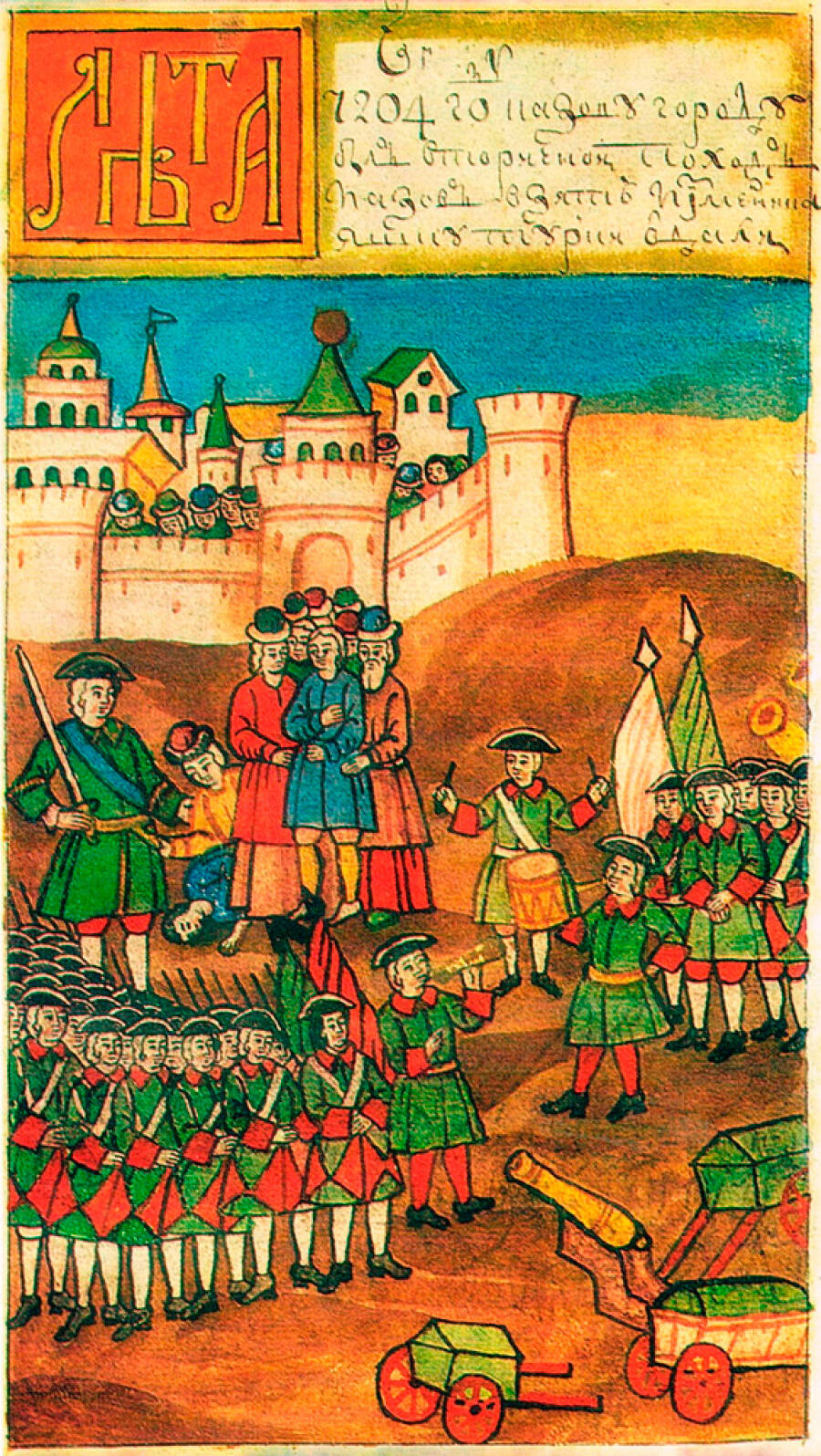 Обложка: Взятие Азовской крепости. Миниатюра из рукописи 1-й пол. 18 века "История Петра I", соч. П. Крекшина. Собрание А. Барятинского. В миниатюру включена сцена выдачи турками Яшки (Якова Янсена), голландского матроса-ренегата. XVIII век.