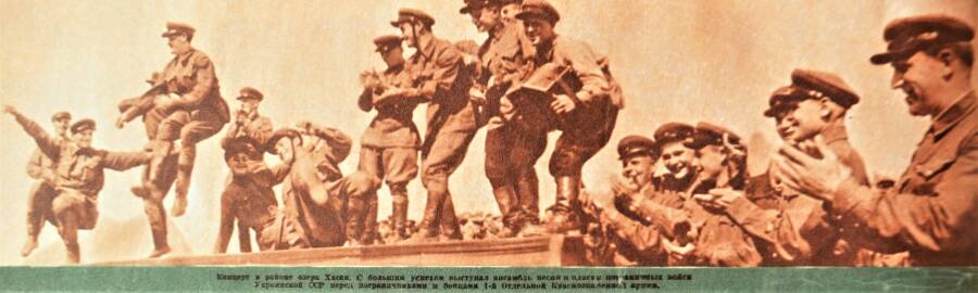 Обложка: Советские солдаты празднуют победу после битвы у озера Хасан.