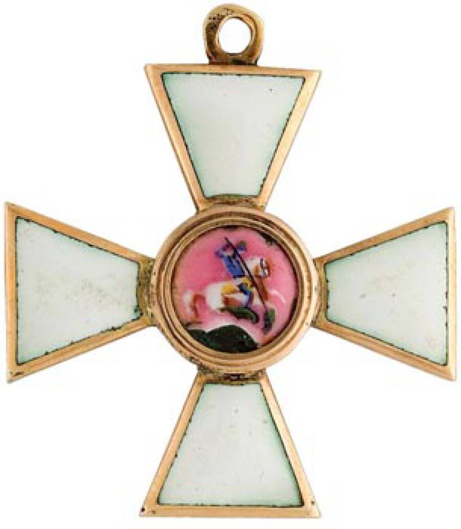 Является единственным русским орденом, которым награждали только за военные заслуги. Знаком этого ордена был белый (эмалевый) крест. Орденская лента состояла из черных и оранжевых полос.