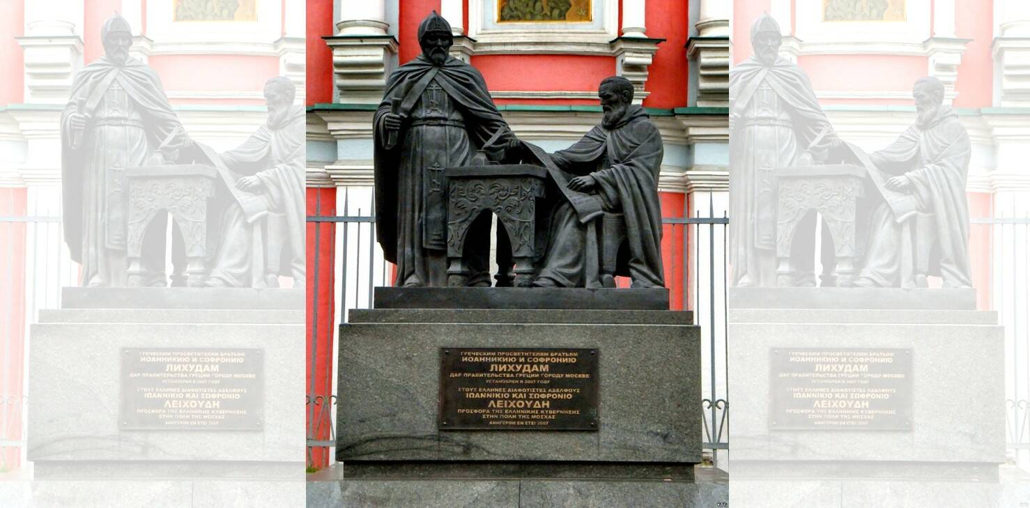 Обложка: Бронзовый памятник греческим монахам-просветителям братьям Иоанникию и Софронию Лихудам — дар правительства Греции городу Москве. Авторами стали скульптор Вячеслав Клыков и архитектор Виктор Пасенко.