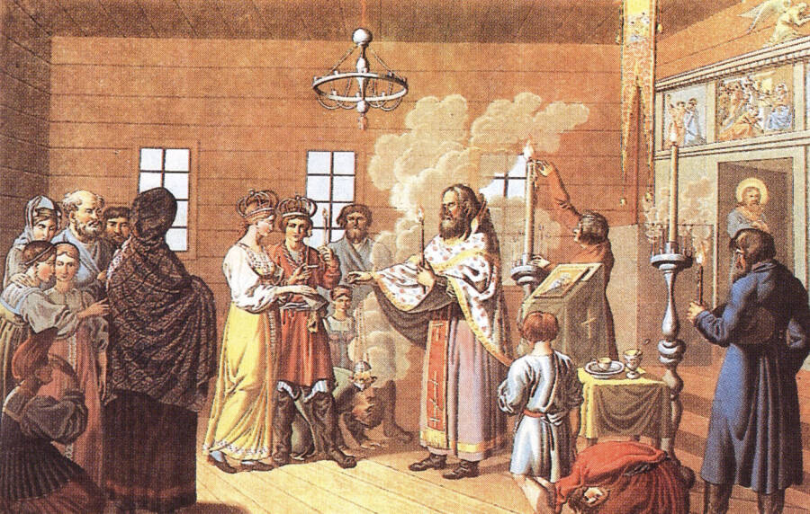 Обложка: Русская свадьба. Гравюра К. Вагнера по рисунку Е. М. Корнеева. 1812 г.