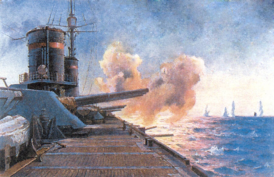 Обложка: Балтийский линкор ведет огонь главным калибром. 1914-1916