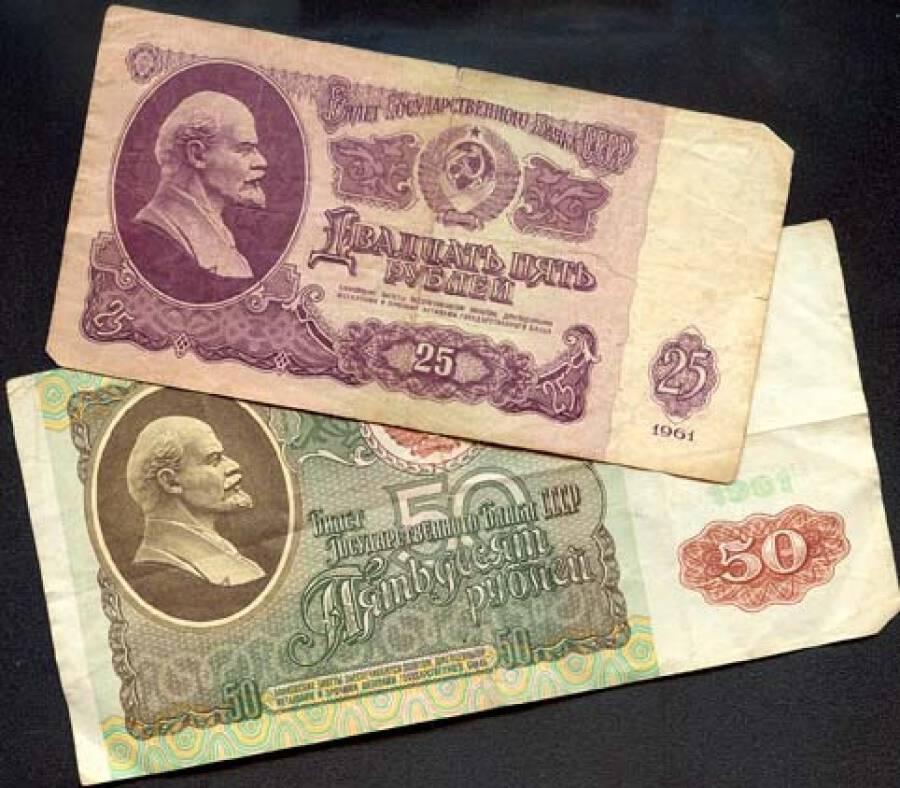 Обложка: Бумажные купюры СССР 25 и 50 рублей 1961 года