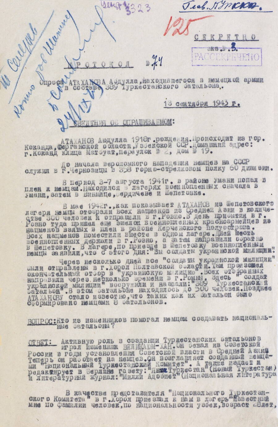ОТВЕТ: Читал, и очень много. Все люди нашего батальона тоже читали. (В доказательство Атаханов передал 10 листовок на русском языке). Именно эти листовки и сыграли главную роль в нашем решении перейти на сторону Красной Армии»[1].