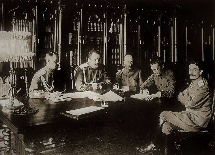 Военная ложа прекратила существование с началом войны, да и прежде была неработоспособной. Но важно, что масоны контактировали с генералом Николаем Рузским через его брата Дмитрия, масона. Они не могли управлять генералом, но могли осторожно усиливать его оппозиционность. Масоны завязывали и другие неформальные связи с военными. Впрочем, это делали и другие либералы – не масоны.