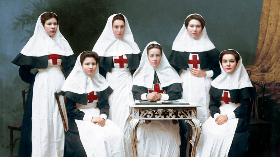 Сестры милосердия появились в Российской империи в 40-х годах XIX века. Тогда были основаны Свято-Троицкая и Никольская общины. Вступить в них могли женщины, готовые пройти серьезную медицинскую подготовку и приступить к работе в больницах и приютах. В годы Крымской войны Великая княгиня Елена Павловна открыла Крестовоздвиженскую общину сестер милосердия. Пройдя курс обучения, дамы отправлялись на фронт. Врачебного персонала не хватало, и выдающийся хирург Николай Пирогов ждал помощи. Впоследствии он напишет о первых сестрах Крымской войны: «Горжусь тем, что руководил их благословенной деятельностью».