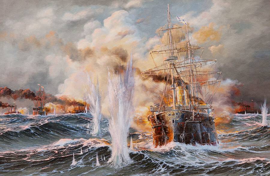 14 августа 1904 года русские моряки Владивостокского отряда крейсеров вступили в неравную схватку с японскими броненосцами