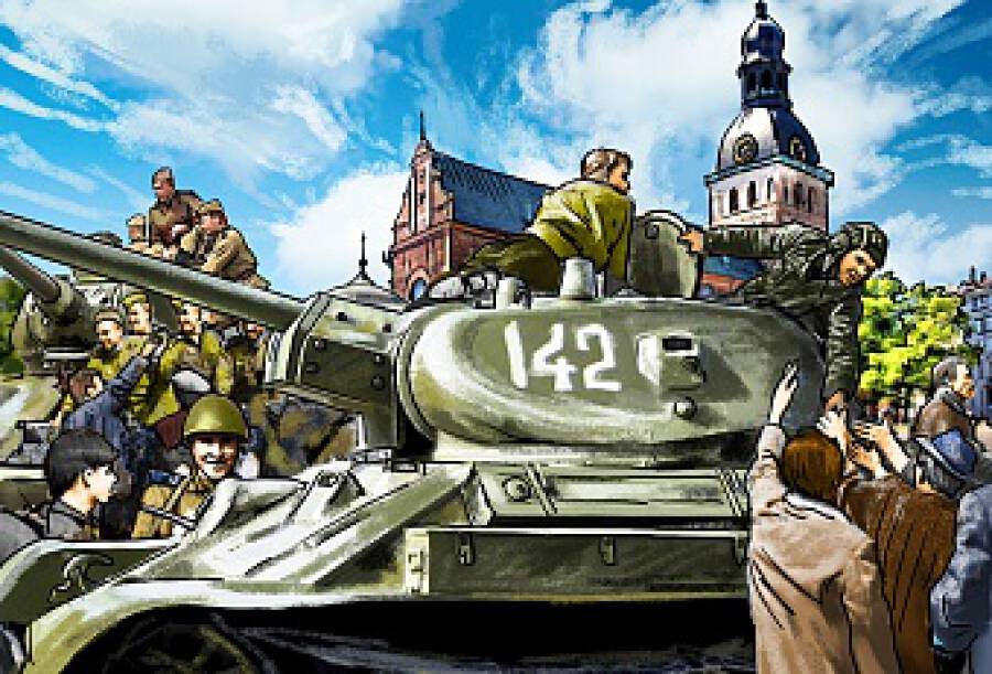 ...Латвия была освобождена ценой жизней 150 000 солдат Красной Армии. После чего на сорок пять лет стала одной из самых индустриально развитых и продвинутых республик СССР.