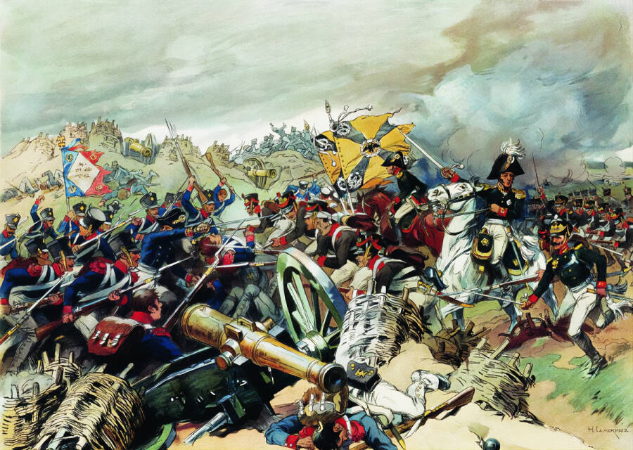 Когда о взятии редута доложили Наполеону, он долго выяснял подробности боя. Особенно его интересовал тот факт, что на позициях не удалось взять ни одного пленного. Как писал в своих мемуарах входивший в окружение французского императора генерал Филипп-Поль де Сегюр, «Наполеон, удивленный, забросал его (генерала Коленкура. – Прим. авт.) своими вопросами. «Разве его кавалерия не атаковала вовремя? А эти русские решили победить или умереть?» Ему ответили, что, доведенные до фанатизма их военачальниками и привыкшие драться с турками, которые кончают своих пленных, они предпочли покончить с собой, чем сдаться противнику. Император погрузился тогда в глубокое раздумье».