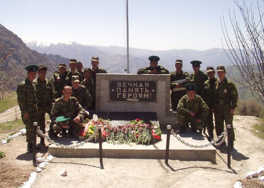Речь идет о «Заставе имени 25 героев» — 12-й пограничной заставе Московского пограничного отряда в Таджикистане. 13 июля 1993 года 47 пограничников и солдат 201-й дивизии приняли неравный бой с душманами, которые вшестеро превосходили их по численности. 25 российских солдат и офицеров погибли в этой схватке, и теперь их имя носит застава, которую они защитили ценой своей жизни.