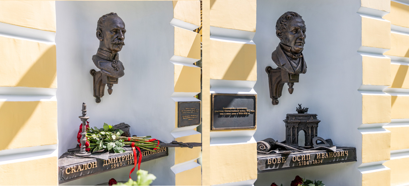 26 июня у здания Штаб-квартиры Российского военно-исторического общества состоялась церемония открытия памятников-бюстов архитектору Осипу Бове и первому Председателю Совета Императорского Русского военно-исторического общества Дмитрию Скалону.