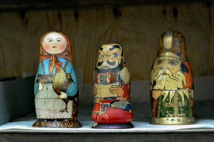 24 октября 1900 года на Всемирной выставке в Париже посетители впервые увидели необычную игрушку. Румяная кукла Матрена, крепко держащая подмышкой бойкого петуха, открывалась – и из нее появлялась еще одна яркая кукла, а за ней еще, и еще, и так до восьми фигурок. Нарекли куклу матрешкой (производное от имени Матрена, которое было весьма тогда популярным среди русских крестьянок).