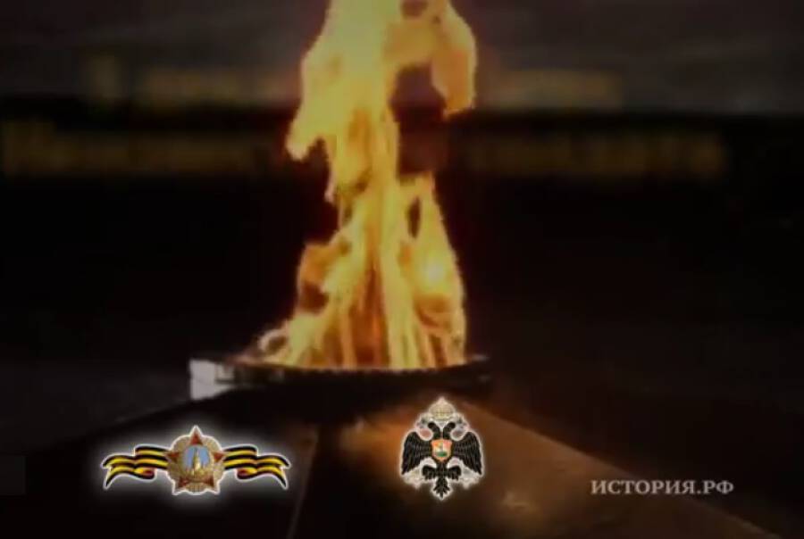 Вечный огонь славы, вырывающийся из середины бронзовой воинской звезды, зажжён от пламени, пылающего на Марсовом поле в Петербурге. «Имя твое неизвестно, подвиг твой бессмертен» – начертано на гранитной плите надгробья.
