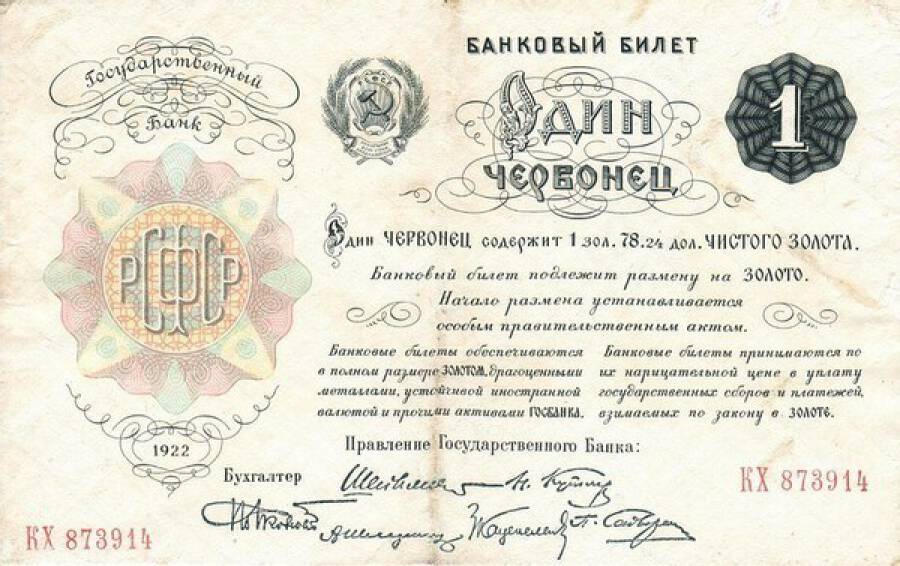 Два года, с 1922-го по 1924-й, понадобилось Сокольникову для проведения необходимых изменений. Советское государство получило твердую валюту – червонец. По стоимости он был равнозначен десятирублевой золотой монете царской чеканки и обеспечен золотом и другими драгоценными металлами на 25% и на 75% – товарами и ценными бумагами.