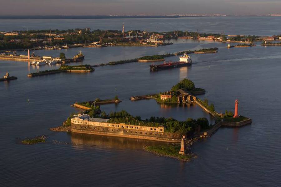 Заложенной Петром Великим новой столице России – Санкт-Петербургу – требовалась серьезная защита с моря. Местом для строительства форта будущий император всероссийский выбрал небольшой остров Котлин, прикрывавший вход в Невскую губу. В 1704 году крепость, построенная первой рядом с Котлином, получила название Кроншлот – Коронный замок, и довольно быстро стала обрастать новыми фортами. А 18 (7 по ст. ст.) октября 1723 года Петр I вместе со своей супругой, императрицей Екатериной, заложил на острове новую крепость, которая, по его замыслу, «заключала бы в себя весь город и все портовые сооружения, и служила бы делу обороны со всех сторон». Эта «фортеция» и получила имя Кронштадт, со временем распространившееся на весь город, разросшийся вокруг главной военно-морской базы Балтийского флота.
