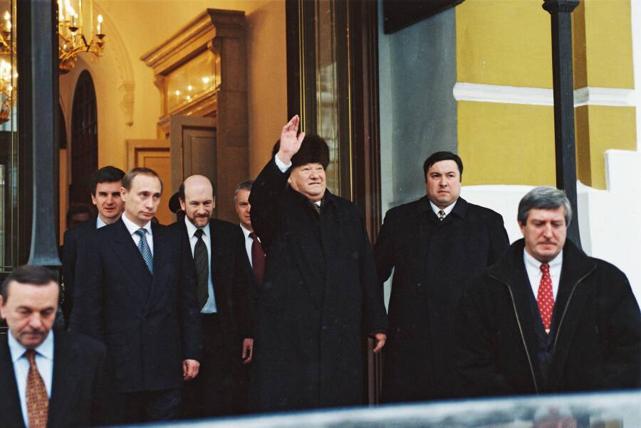 Обложка: МОСКВА. Президент России Борис Ельцин объявил о досрочном уходе со своего поста и о временной передаче полномочий Председателю Правительства Владимиру Путину. На снимке: Борис Ельцин покидает Кремль. Фото Kremlin.ru CC BY 4.0