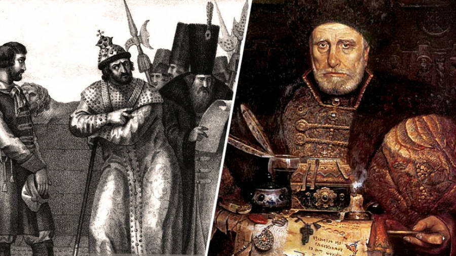 Обложка. Б. Чориков «Иван Грозный выслушивает письмо от Андрея Курбского», 1836; Павел Рыженко «Андрей Курбский», 2009 https://russian.rt.com/