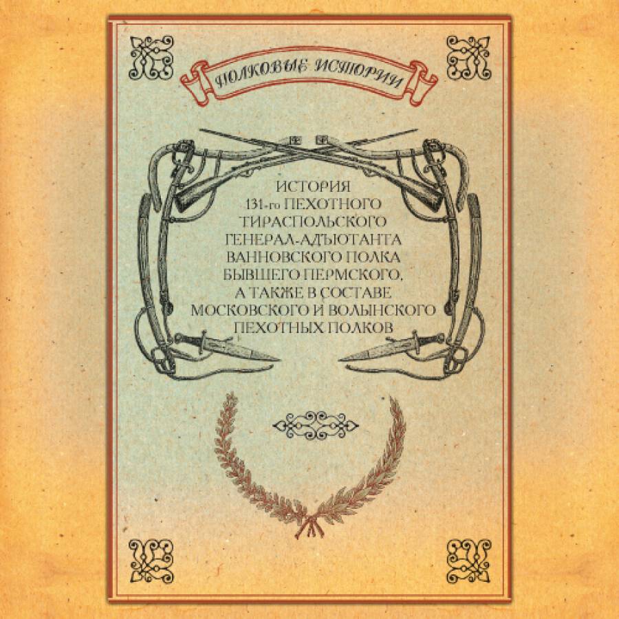 Обложка: обложка книги «История 131-го пехотного Тираспольского Генерал-Адъютанта Ванновского полка, бывшего Пермского, а также в составе Московского и Волынского пехотных полков / Составил Генерал-Майор Михайлов. Репр. воспр. текста изд. 1900. СПб. : Нестор-История, 2010.»