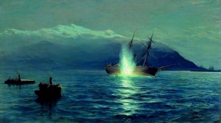 И.К. Айвазовский. Минная атака катерами парохода Великий князь Константин