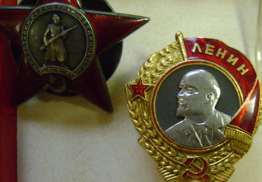 Правее виден орден Ленина самого раннего варианта, без красного знамени и красной звезды. Источник: https://ru.wikipedia.org