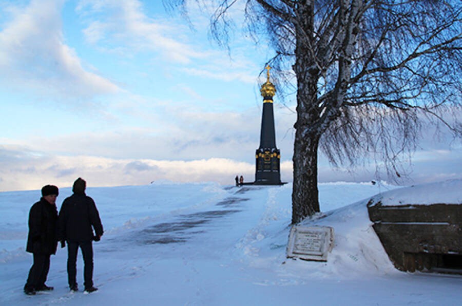 У последней деревни, на западной окраине Бородинского поля, находится знаменитый Шевардинский редут. Помните: «И вот нашли большое поле/ Есть разгуляться где на воле!/ Построили редут. /У наших ушки на макушке! /Чуть утро осветило пушки /И леса синие верхушки — /Французы тут как тут. /Забил снаряд я в пушку туго /И думал: угощу я друга! /Постой-ка, брат мусью!»