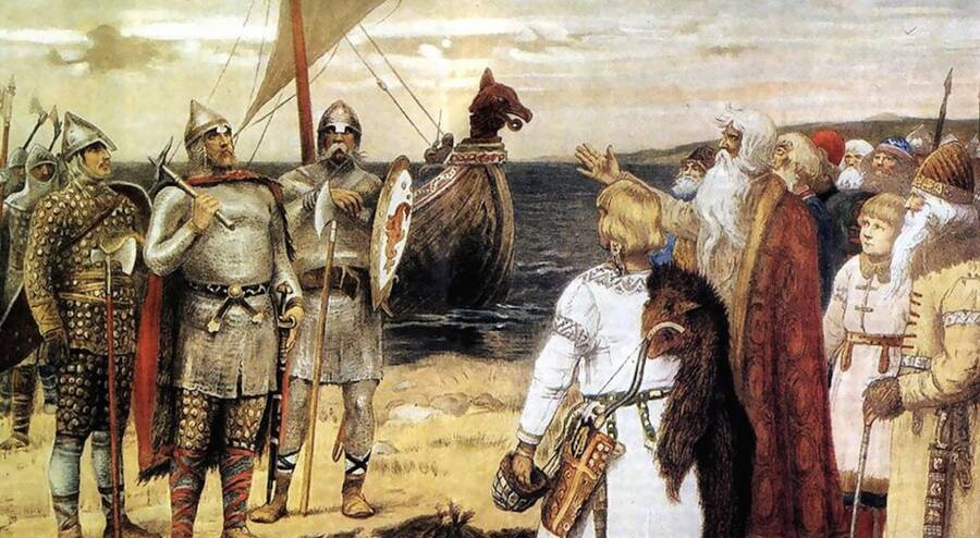 Согласно древнерусской летописной традиции, в 862 году чудь, кривичи и ильменские словене обратились за море к варягам: "Земля наша велика и обильна, а порядка в ней нет. Приходите княжить и владеть нами". Из-за непрекращающихся распрей между племенами было решено найти себе правителя, который бы правил справедливо и положил конец склокам. “Повесть временных лет” гласит, что из-за моря прибыл Рюрик и его братья – Синеус и Трувор. Изначально Рюрик обосновался на Ладоге. После каждый брат принял власть в племенных центрах на Северо-Западе Руси: Рюрик стал княжить в Новгороде, Синеус – на Белоозере, Трувор – в Изборске.