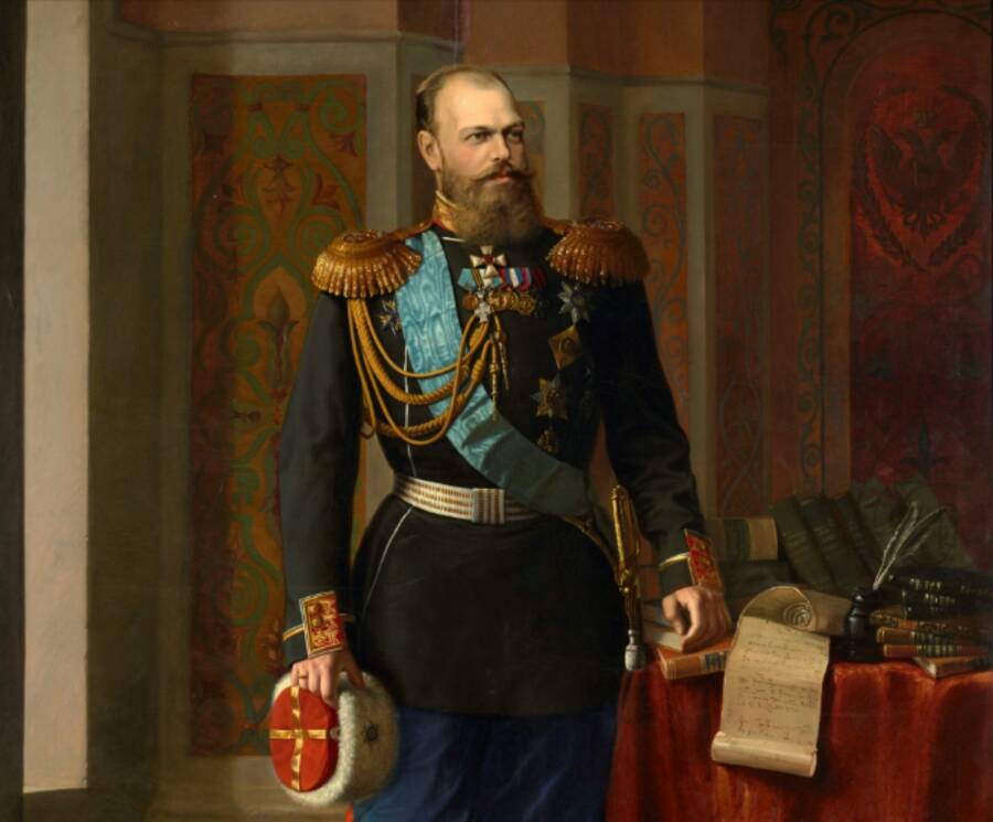 Сын убитого монарха Александра II и отец последнего императора Николая II вошел в историю как мудрый и обстоятельный правитель. При нем Россия не вела никаких войн, за что его назвали Царь-миротворец. Он проводил консервативную и охранительную политику, запрещал либеральные реформы, но тем не менее, в его правление было сделано многое для укрепления экономики и внутренней стабильности Российской империи. Александр III русифицировал окраины, покровительствовал русскому искусству, заселял пустующие регионы страны, за это его часто обвиняют в мифическом национализме, хотя все его действия были нацелены на благо страны. При нем начался расцвет искусства, в моду вошел стиль a-la-russe. На международной арене он также упрочил положение России: был заключен прочный мир с Германией и Великобританией, развивался Франко-Русский союз. Флот России, ослабленный в предыдущие годы, стал третьим в мире.