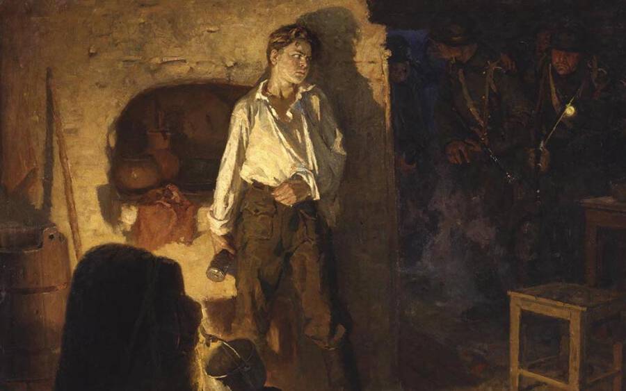 Несколько дней гитлеровские палачи допрашивали юношу. К нему применяли самые зверские пытки. Но 16-летний сельский парень ничего не сказал об отряде, о командире, о комиссаре и о своих товарищах.