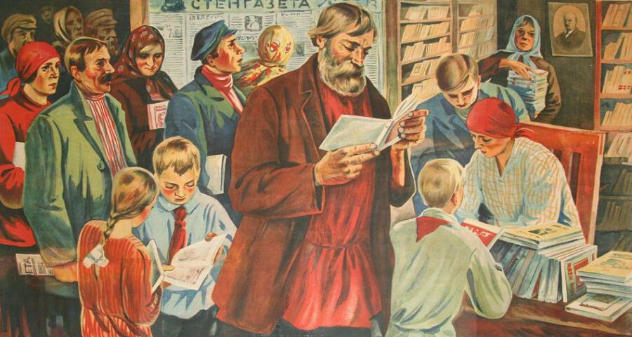 Когда в эпоху правления Екатерины Великой обсуждался вопрос образования, один государственный деятель выразил такую мысль о его широкой доступности: «Пусть крестьяне путём грамоты сами собой находят, чем они обязаны Богу, государю, отечеству и по закону помещику своему». Это означало пропаганду тех идеологических ценностей, которые становились доступны благодаря умению читать. Так и большевики, научив людей читать, включили в 1925–1926 годах в программу ликбеза обязательный курс политграмоты. Только обучались грамоте все в возрасте от 8 до 50 лет в обязательном порядке и, если было необходимо, без отрыва от производства. Результатом стала знаменитая на весь мир образовательная система советской школы.
