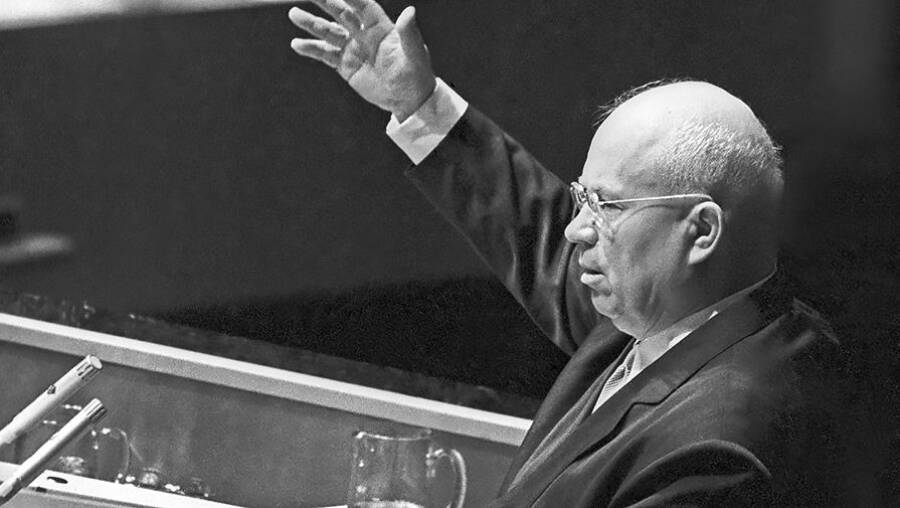 12 октября на Генеральной Ассамблее ООН среди прочих обсуждался так называемый венгерский вопрос (восстание 1956 года против просоветского режима в Венгрии, подавленное советскими войсками). СССР со своей стороны предложил для повестки дня 15-й сессии вопрос о предоставлении независимости колониальным странам и народам. Во время своего выступления генсек ЦК КПСС пребывал в ярости от темы венгерского вопроса и якобы снял с ноги туфлю, колотил ею по трибуне, грозя американцам «кузькиной матерью». Это самая гротескная версия, однако существуют и другие.