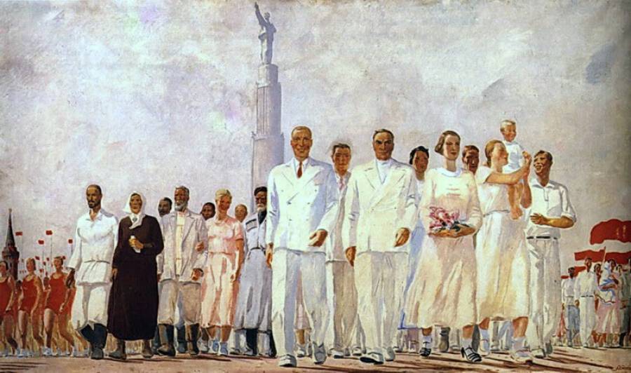 В ходе выполнения второй пятилетки (1933–1937 годы) шахтёр Алексей Стаханов превысил норму за смену (5 часов 45 минут) в 14 раз! За это его наградили орденом Ленина, а в 1970 году ему присвоили ещё и звание Героя социалистического труда. История о беспрецедентном превышении нормы производства облетела всю страну. Инициативу подхватили сначала шахтёры, а потом и представители остальных профессий. Те, кому удавалось превысить норму на 1000 %, назывались тысячниками; те, кто выполнял норму в максимально короткие сроки, – скоростниками. В 1935 году в Москве прошло Первое Всесоюзное совещание стахановцев, где подчёркивалась важная роль стахановского движения в социалистическом строительстве. Там же Сталин произнёс фразу, ставшую крылатой: «Жить стало лучше, товарищи. Жить стало веселее».