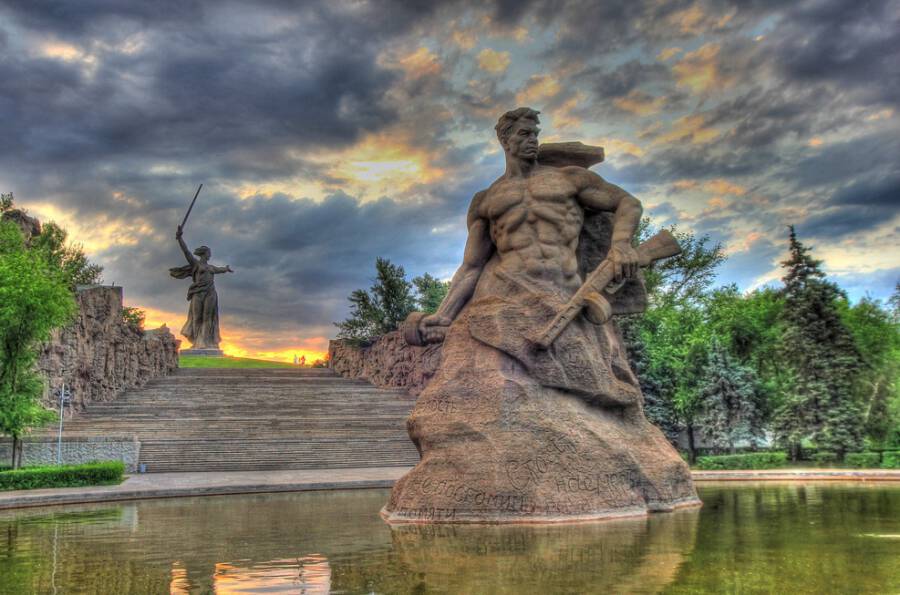 Мамаев курган – место, известное с давних времен. По легенде именно в нем захоронен золотоордынский темник Мамай, с которым бился московский князь Дмитрий Донской на Куликовом поле. Впрочем, гробница так и не была найдена. Зато на кургане находится около 35 тысяч захоронений защитников Сталинграда. Здесь же расположился памятник-ансамбль «Героям Сталинградской битвы». Именно с Мамаева кургана символично взывает к сынам Отечества главный монумент ансамбля – «Родина-мать зовет!».