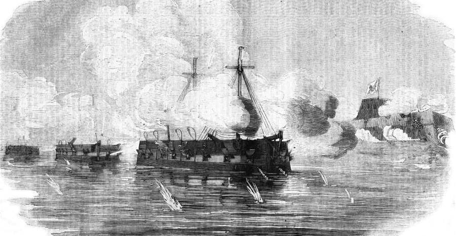 17 октября 1855 года в ходе Крымской войны произошло морское сражение близ Кинбурна, русской крепости на одноименной косе в устье Днепра. В этой битве впервые в истории были применены броненосные корабли. Взятие крепости стало последним из немногочисленных успехов англо-французских войск в Крымской войне.