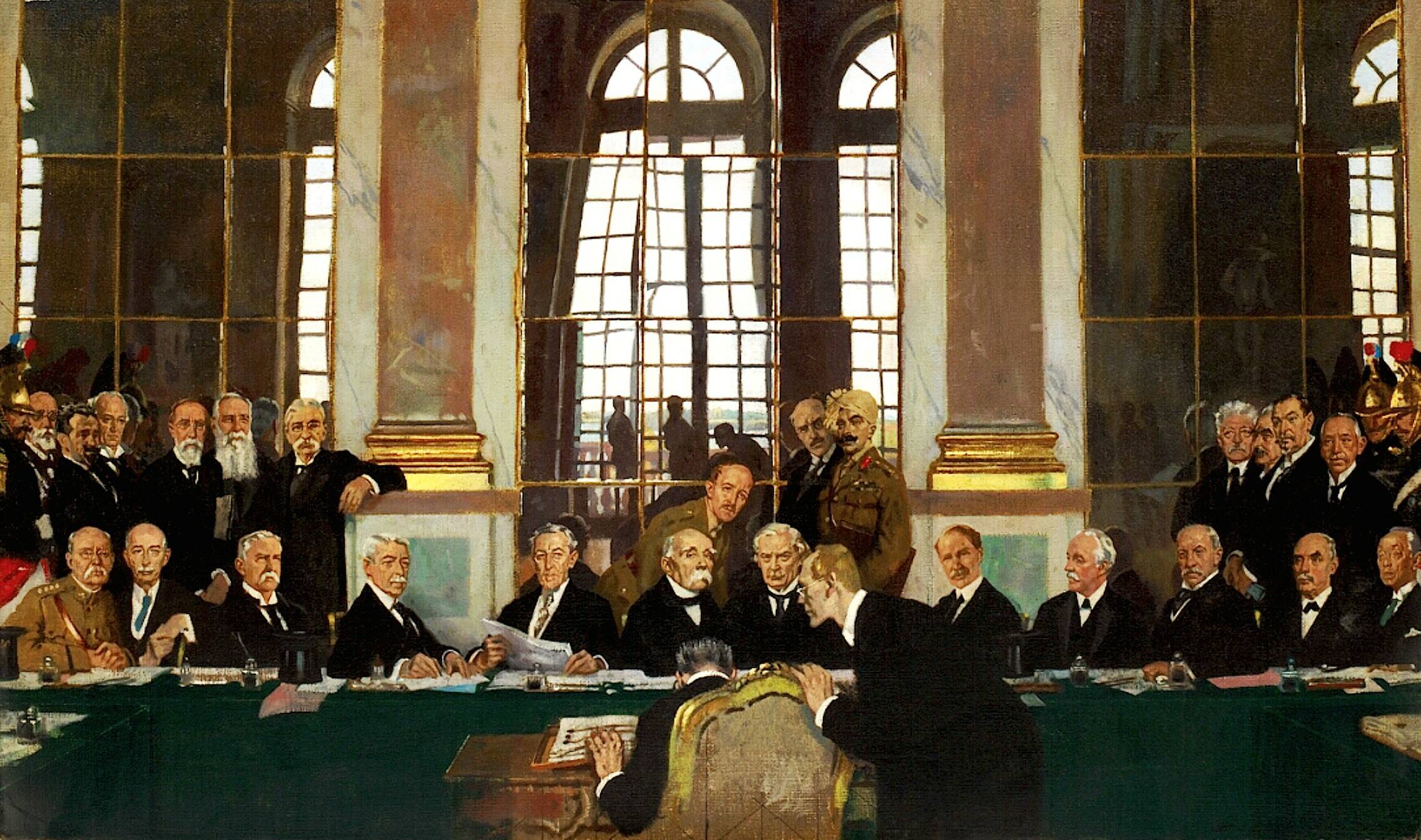Версальский договор был подписан проигравшей Германией, с одной стороны, и главными державами-победительницами, Великобританией, Францией, США, Италией и Японией – с другой. В качестве экзотического приложения договор подписали более двух десятков маленьких стран, примкнувших к победителям, включая Панаму, Гондурас и Либерию, вклад которых в победу был невелик или вообще ничтожен (кто-то просто объявил Германии войну, тем и ограничившись). С союзниками Германии впоследствии были подписаны отдельные договоры: Сен-Жерменский с Австрией, Трианонский – с Венгрией, Севрский – с Турцией, Нёйиский – с Болгарией. Россия, начинавшая войну в стане победившей Антанты, но впоследствии вышедшая из войны, в мирных переговорах не участвовала и договор не подписала.