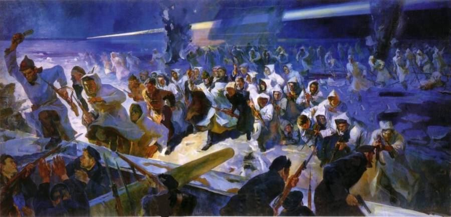 Обложка: Подавление Кронштадтского мятежа. Художник Рудольф Френц. 1935 год.