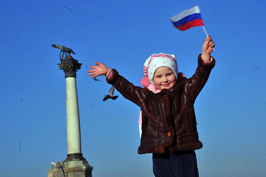 Обложка: Фото девочки с российским флагом в Севастополе, Крым. Фото: Евгения ГУСЕВА.