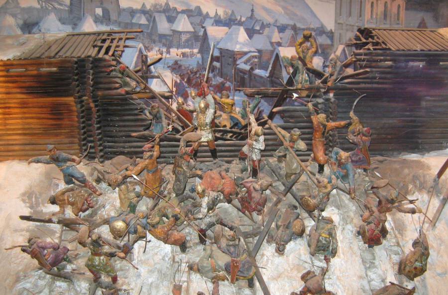 Первым на пути монгольского нашествия на Русь в 1237 году оказалось Рязанское княжество. На реке Воронеж состоялось сражение немногочисленного рязанского войска со 100-тысячным войском монголов, которое завершилось поражением рязанцев. 16 декабря 1237 года началась осада Рязани, и через пять дней захватчики ворвались в город. Практически все жители были убиты, князь Юрий погиб в бою. Разрушения города были такими сильными, что он более не восстанавливался. Современная Рязань находится в другом месте, в отдалении от старого города.