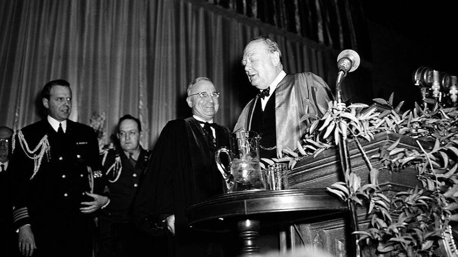 Простого британского гражданина У. Черчилля вызвался сопровождать в поездке до Фултона сам новоиспеченный американский президент Г. Трумэн. Любителям истории хорошо известен тот факт, что на высочайшем уровне отношения советского лидера И. Сталина лучше складывались с предыдущим американским президентом Ф. Рузвельтом. Черчилль же ощущал себя третьим лишним, что ему страшно не нравилось. После скоропостижной кончины Рузвельта страну возглавил бывший при нем вице-президентом Трумэн. Его, пользуясь современными политическими клише, можно назвать «ястребом», он не любил СССР и лично Сталина и был значительно ближе по взглядам к Черчиллю, который всю Вторую мировую войну пытался как открыто, так и в тайне интриговать против нашей страны.