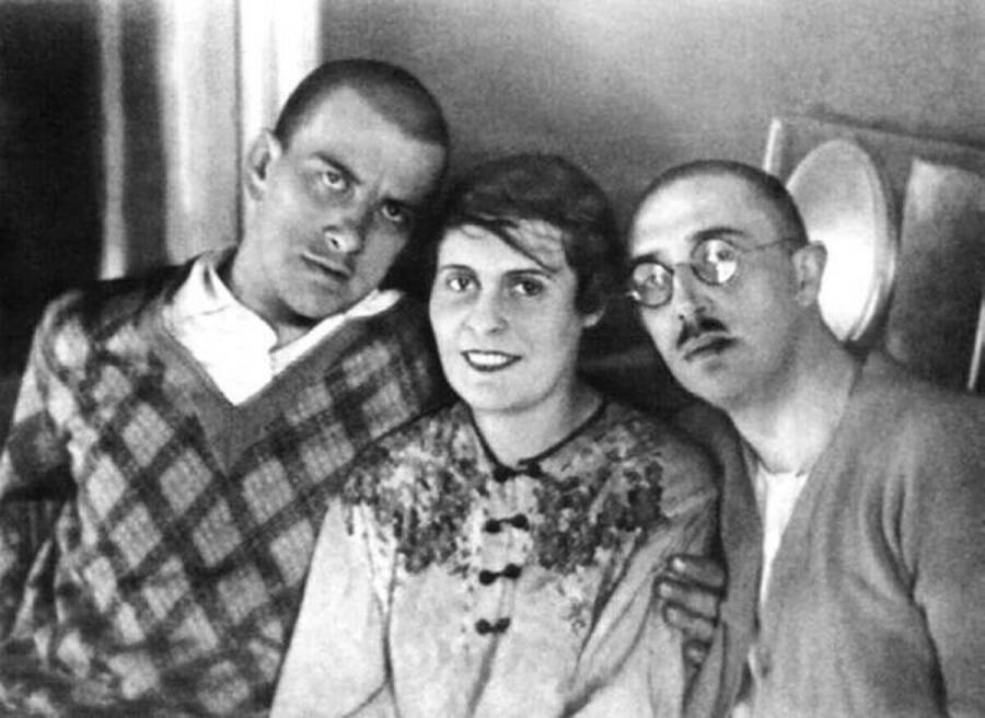 Довольно быстро троица стала жить вместе. На их двери висела незамысловатая табличка: «Брики. Маяковский», вводившая в ступор общественность. Такие открытые браки в высоком обществе и среди интеллигенции хоть никогда и не были редкостью, но фактически это всегда оставалось тайной семьи. В случае этого любовного треугольника высшее общество было свидетелем многочисленных связей внутри любовного трио. Уже после смерти Маяковского в 1940 году Анна Ахматова, говоря о литературном салоне Бриков и его значении для Маяковского, напишет: «Это была его любовь, дружба, ему там все нравилось. Он ведь никогда не уходил от них, не порывал с ними, он до конца любил их».