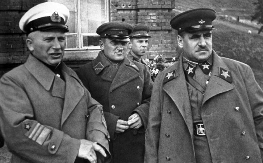 Василий Блюхер (крайний справа) в компании пяти первых маршалов Советского Союза: Михаила Тухачевского, Семена Буденного, Климента Ворошилова и Александра Егорова
