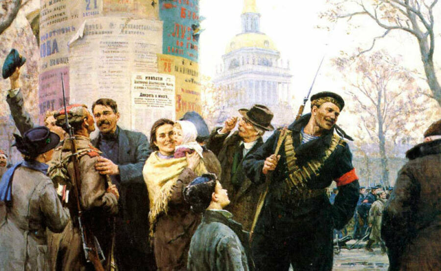 В два часа ночи 8 ноября вооруженные рабочие, солдаты и матросы штурмом взяли Зимний дворец, а менее чем через сутки после этого события на съезде Советов единогласно был принят декрет о мире. Постановлениями съезда также отменена смертная казнь на фронте и объявлено об освобождении из-под стражи солдат и офицеров, арестованных за ведение революционной агитации. В обращениях к фронту делегаты призывают всех к борьбе за власть Советов и помощи в создании нового общественного строя.