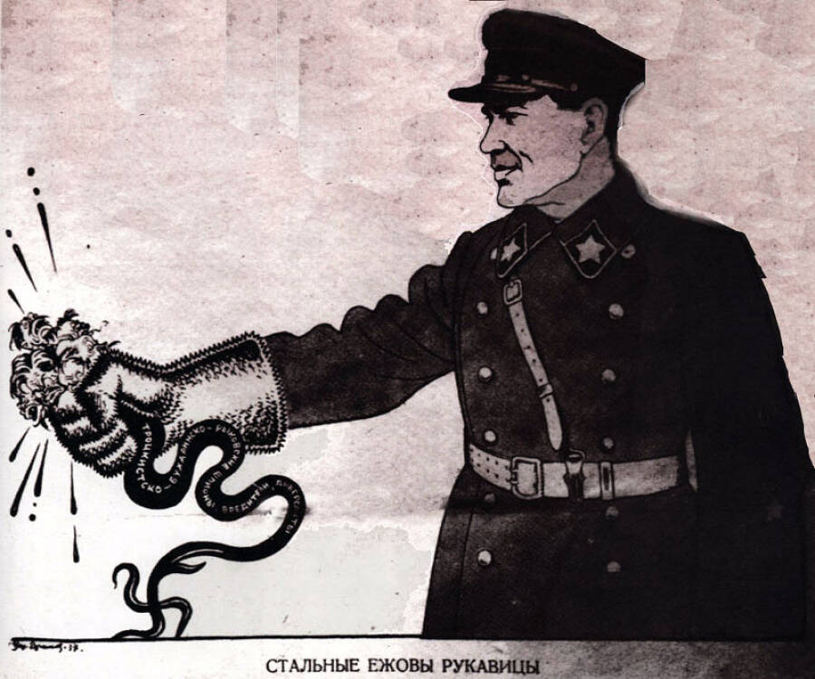 Обложка: советская карикатура «Ежовые рукавицы товарища Ежова»