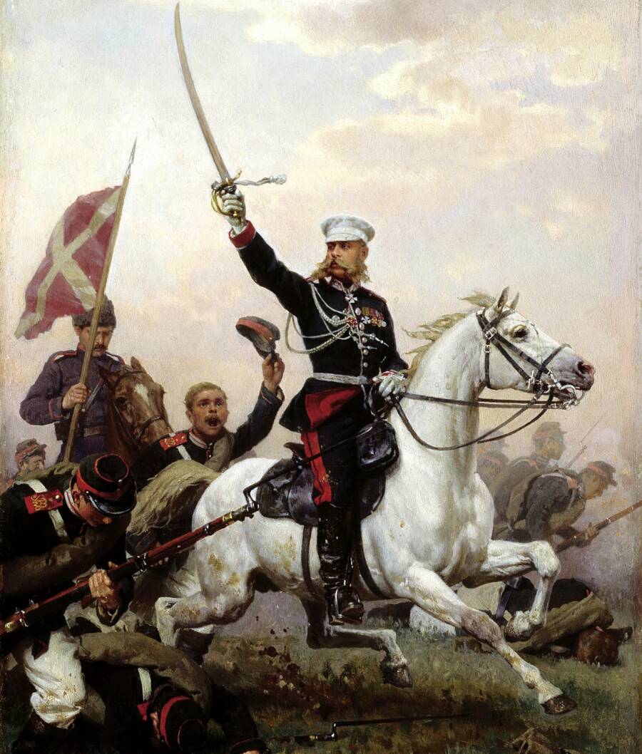 Беллетристам многое дозволено, но кто бы в реальной жизни посмел обратиться со столь оскорбительными словами к действительно молодому, тридцатитрехлетнему, Свиты Его Величества генерал-майору, награжденному орденами Святого Георгия 3- и 4-й степеней, Золотой саблей и Золотой шпагой с бриллиантами с надписью «За храбрость». К тому же племяннику по матери Министра Императорского двора и уделов и командующего Императорской главной Квартирой графа Александра Владимировича Адлерберга 2-го. Скобелев был близок ко двору через отца, командира Собственного Его Величества конвоя и Роты дворцовых гренадер, и деда, полного генерала, коменданта столичной Петропавловской крепости; через свою, только год назад оставленную, жену, фрейлину, княжну Марию Николаевну Гагарину и сестру Зинаиду Дмитриевну, подругу и будущую жену Его Императорского Высочества Евгения Максимилиановича Романовского, 5-го Герцога Лейхтенбергского! Завидовать могли многие, но выговаривать на полях сражений в Болгарии, и то только устно, – один Великий князь Николай Николаевич старший, Главнокомандующий действующей армией на Балканах.