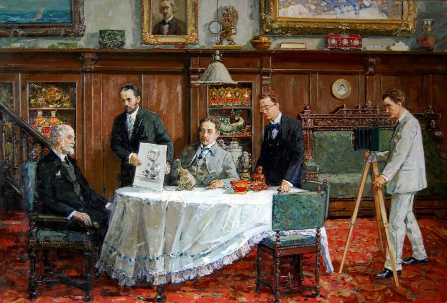 Обладать драгоценными предметами, созданными Карлом Фаберже и его коллегами, становилось все более престижным. Магазины с прекрасными изделиями привлекали внимание представителей разных слоев общества. Порой Карл Густавович мог позволить себе творческое баловство, которое, впрочем, наряду с известными пасхальными яйцами тоже вошло в историю. В 1905 году мастер создал необычный натюрморт, состоящий из простых вещей: кирпича, граненого стакана, яичницы и закуски в виде маленькой рыбешки. Только вот материалы для этих предметов использовались отнюдь не рядовые. Кирпич ювелир изготовил из яшмы, желток – из янтаря, стакан вместе с содержимым – из горного хрусталя, а рыбки и мухи – из серебра. Композицию окрестили «пролетарским завтраком». В глаза бросается еще одна занимательная деталь натюрморта – выполненная из серебра газета, прикрывающая кирпич. На ней видна надпись «Николай Второй». Оказывается, Карл Фаберже вдохновился событиями первой русской революции, а оригинал печатного издания – не что иное, как «Ведомости Санкт-Петербургского градоначальства», в которых был опубликован манифест «Об усовершенствовании государственного порядка». Именно он по замыслу мастера и выступил подставкой для скромного набора продуктов.