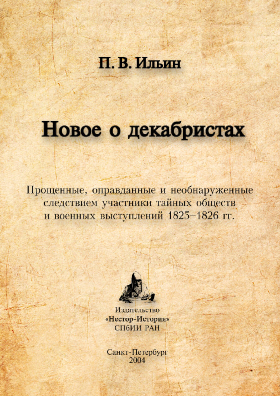 Ильин П.В. Новое о декабристах. Прощенные, оправданные и необнаруженные следствием участники тайных обществ и военных выступлений 1825–1826 гг. СПб.: Издательство Санкт-Петербургского института истории РАН «Нестор-История», 2004. — 664 с.