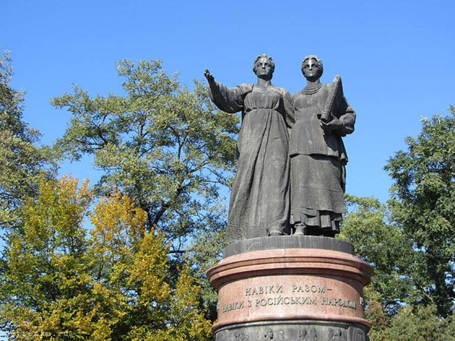 Что из этого турист запомнит? Правильно, что русские и украинцы – два народа, которые сколько-то там лет тому назад воссоединились. Удивительный, хотя и нередкий пример того, как памятник калечит историю. Почему? Потому что народ один.