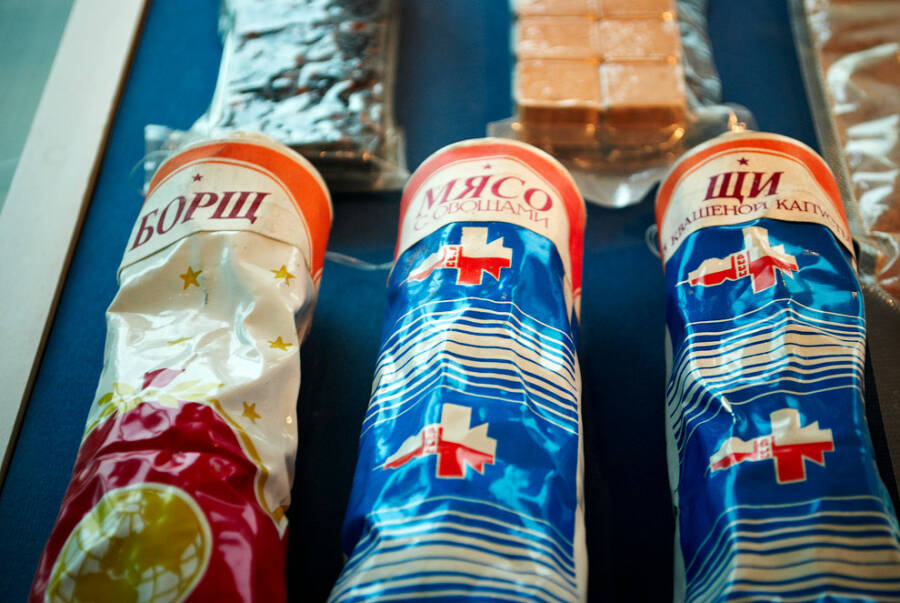 Сначала считалось, что лучшей пищей для обеда на орбите являются питательные таблетки. Они быстро усваиваются организмом, их практически невозможно повредить или испортить. Правда, эта идея так и не была претворена в жизнь. Не понравилась она и самим космонавтам – даже вдали от дома хотелось питаться привычной пищей. Поэтому уже для первых покорителей космических пространств консервные заводы СССР разработали меню из трех блюд. Каждое блюдо запечатывалось в тюбик, чтобы не пришлось пользоваться посудой. Первым такую еду попробовал Герман Титов в августе 1961 года, совершая 25-часовой полет. Космонавту предложили овощной суп-пюре, печеночный паштет, черносмородиновый сок. Ел Герман Титов трижды, но после приземления все же пожаловался на головокружение – вероятно, от голода. Спустя два года Институт медико-биологических проблем РАН разработал новое меню для советских космонавтов. В их рационе появились борщ, куриное филе, пожарские котлеты и другие «земные» блюда, знакомые каждому. Исследователи выяснили, что энергетическая ценность космической пищи должна составлять не менее 2800 килокалорий в сутки, причем есть лучше не три раза в сутки, а четыре. Идеальный суточный рацион содержал 100 граммов белка, 118 – жиров и 308 – углеводов. Другой важной задачей было спасти космонавтов от авитаминоза, потому им назначили целый комплекс необходимых для здорового существования витаминов. К сегодняшнему дню число блюд увеличилось до двухсот пятидесяти, причем космонавты могут заказать и свежие продукты, если на МКС направляется грузовой корабль.