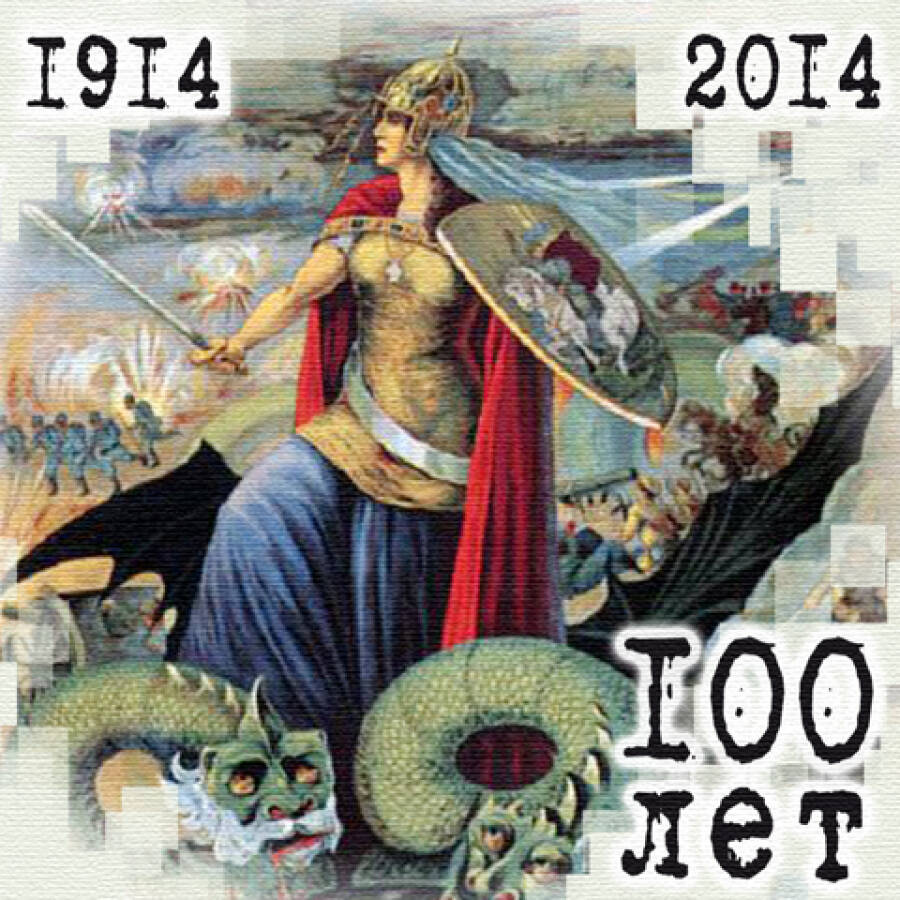Обложка: Плакат 1914 года. Российская империя изображена в образе поленицы, попирающей змея с двумя головами, символизирующими Германию и Австро-Венгрию.